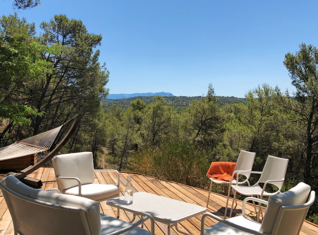 Enfin, une terrasse belvédère a été conçue sur une partie du terrain qui offre une magnifique vue sur la montagne Sainte Victoire, particulièrement au moment du coucher de soleil.